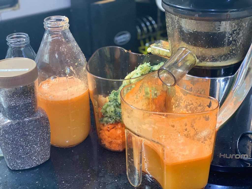 Because I’m feeling a bit under the weather, I’m juicing. Gotta flush out toxins that’s dragging my body down. Caught up between meetings and baking, perhaps this is my body’s way of saying, it’s missing the gym.